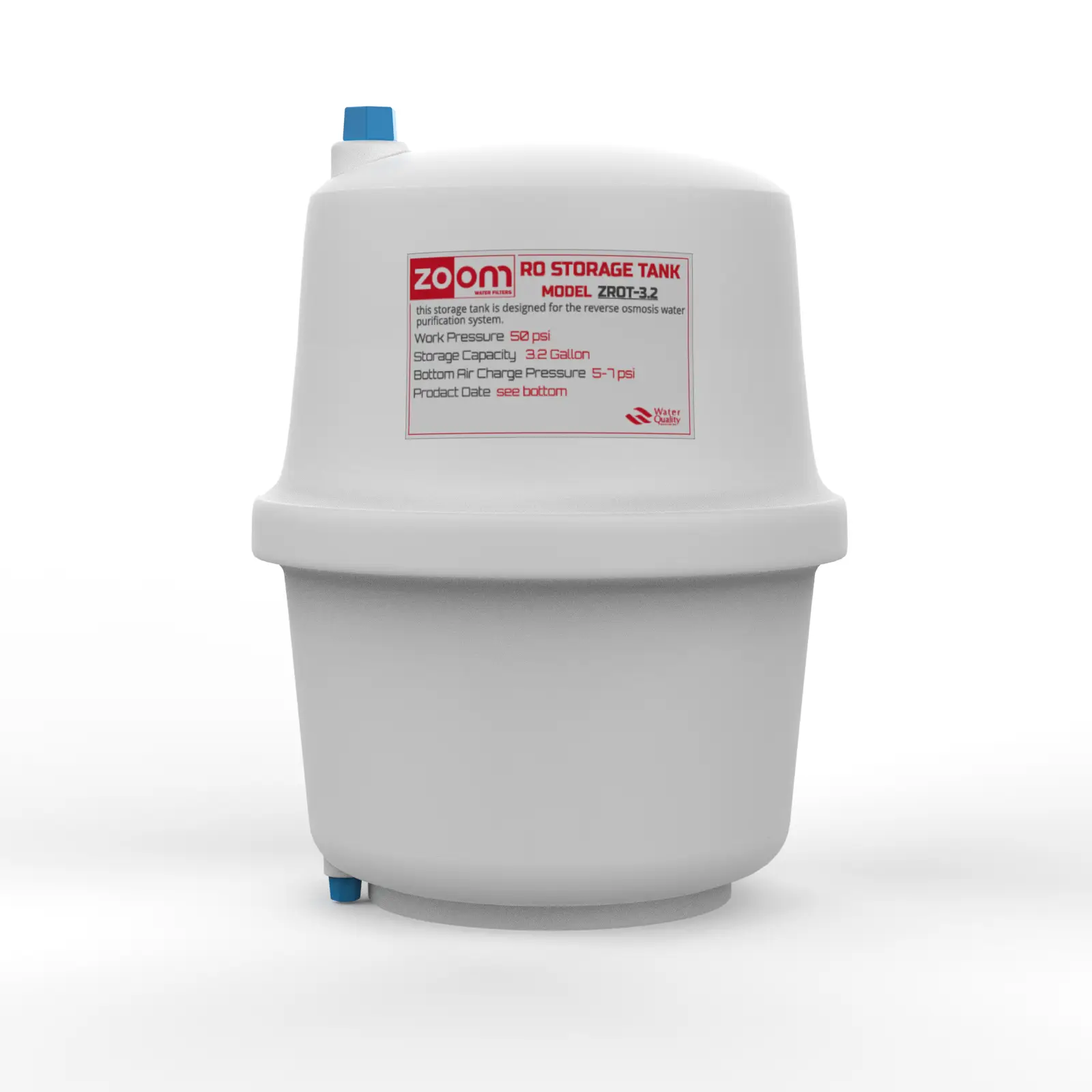 The Zoom 3.2-gallon pressurized tank is an essential component of a reverse osmosis (RO) system. It stores purified water under pressure, ensuring that water is readily available when you turn on the RO faucet.