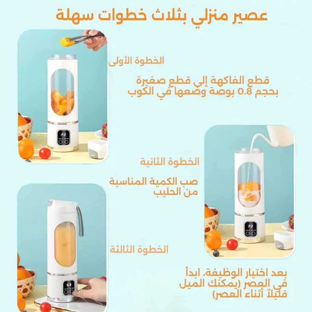 ابدأ يومك بجرعة من الحيوية والنشاط مع صانع العصير المحمول، وتذوق طعم الصحة الطازج بضغطة زر واحدة!