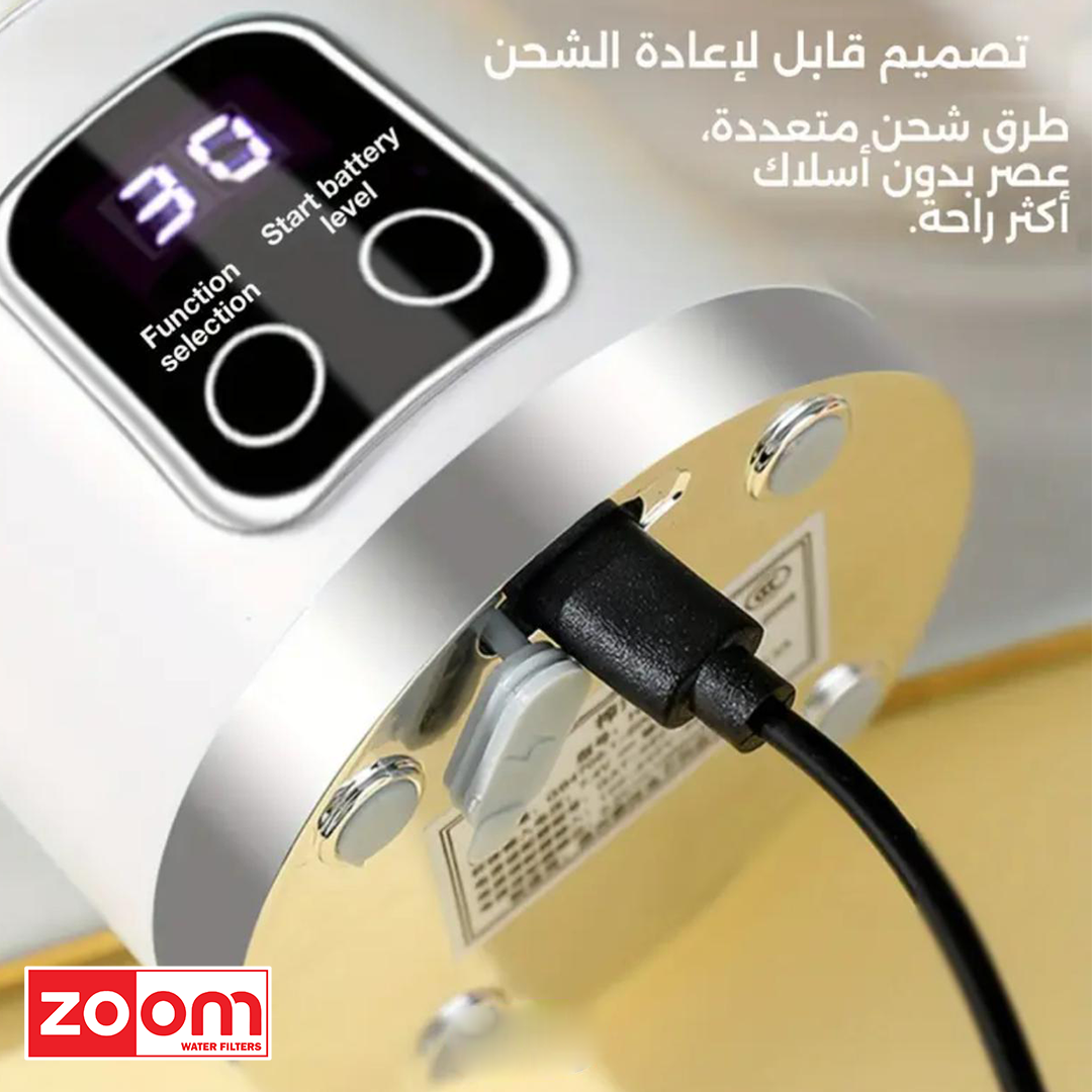 هل تبحث عن طريقة سهلة وسريعة للحفاظ على نمط حياة صحي وسط مشاغل الحياة اليومية؟ اكتشف الرفيق المثالي لصحتك مع العصارة الكهربائية المحمولة المتطورة. تم تصميم هذا الجهاز المبتكر ليمنحك حرية تحضير عصائر الفواكه والخضروات الطازجة أينما كنت، دون الحاجة للبحث عن مقبس كهرباء، بفضل تقنية التشغيل اللاسلكي والبطارية القوية القابلة لإعادة الشحن عبر منفذ USB.